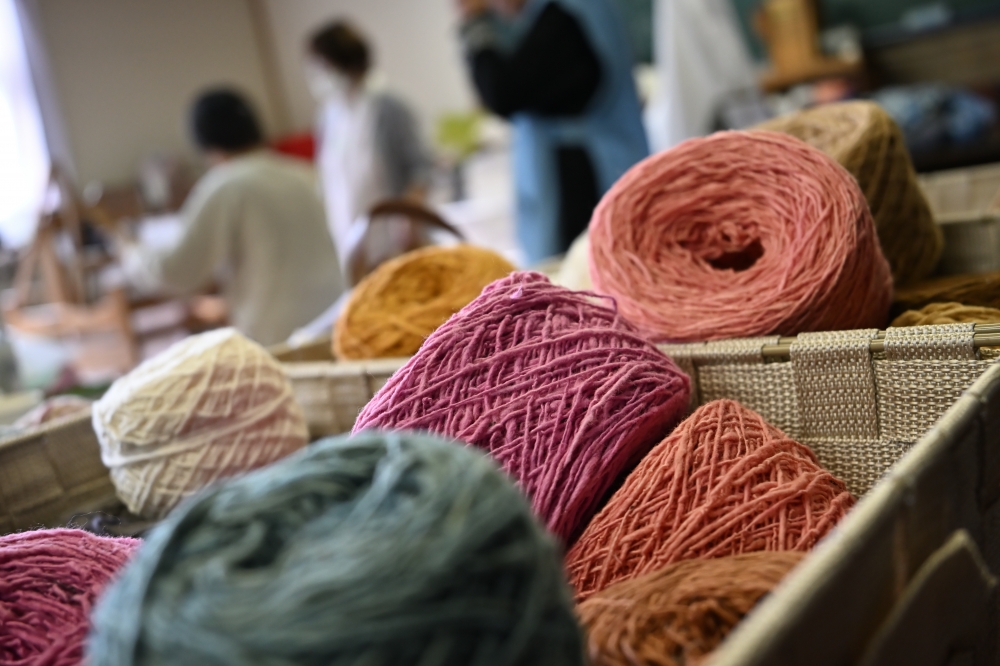 草木染めされたカラフルな綿糸の中から、自分の作品のイメージにあったものを選んでいきました。